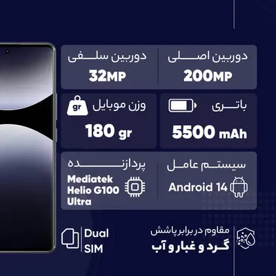 - رزولوشن دوربین اصلی ۲۰۰ مگاپیکسل