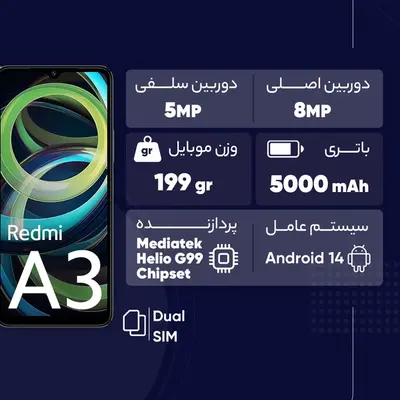 گوشی موبایل شیائومی مدل Redmi A3 یگ گوشی زیبا و کاربردی است. این گوشی طراحی خوبی دارد و از وزن و ابعاد استانداردی بهره میبرد. نمایشگر و دوربین استاندارد در حد قیمت گوشی به شما کمک میکند تجربه بصری خوبی داشته باشید و پردازنده هم از پس کارهای معمول و روزمره به خوبی برمیآید. همچنین باتری استانداردی هم برای این گوشی در نظر گرفته شده و در کل برای یک گوشی اقتصادی، ویژگیهای فنی خوبی را شاهد هستیم.