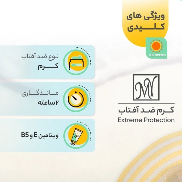 • حجم ضد آفتاب ۵۰ میلی‌لیتر