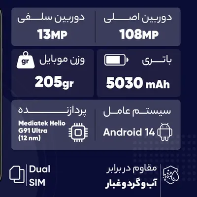 - رزولوشن دوربین اصلی ۱۰۸ مگاپیکسل